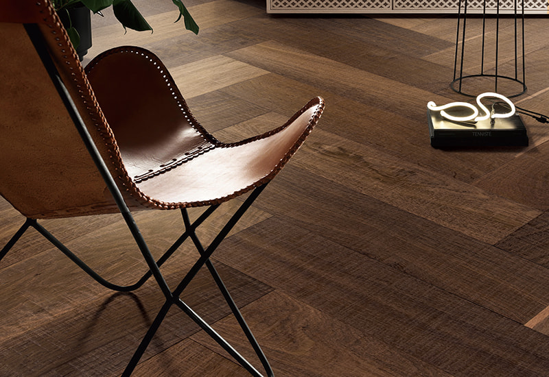 Lantai kayu keras herringbone yang direka bentuk
